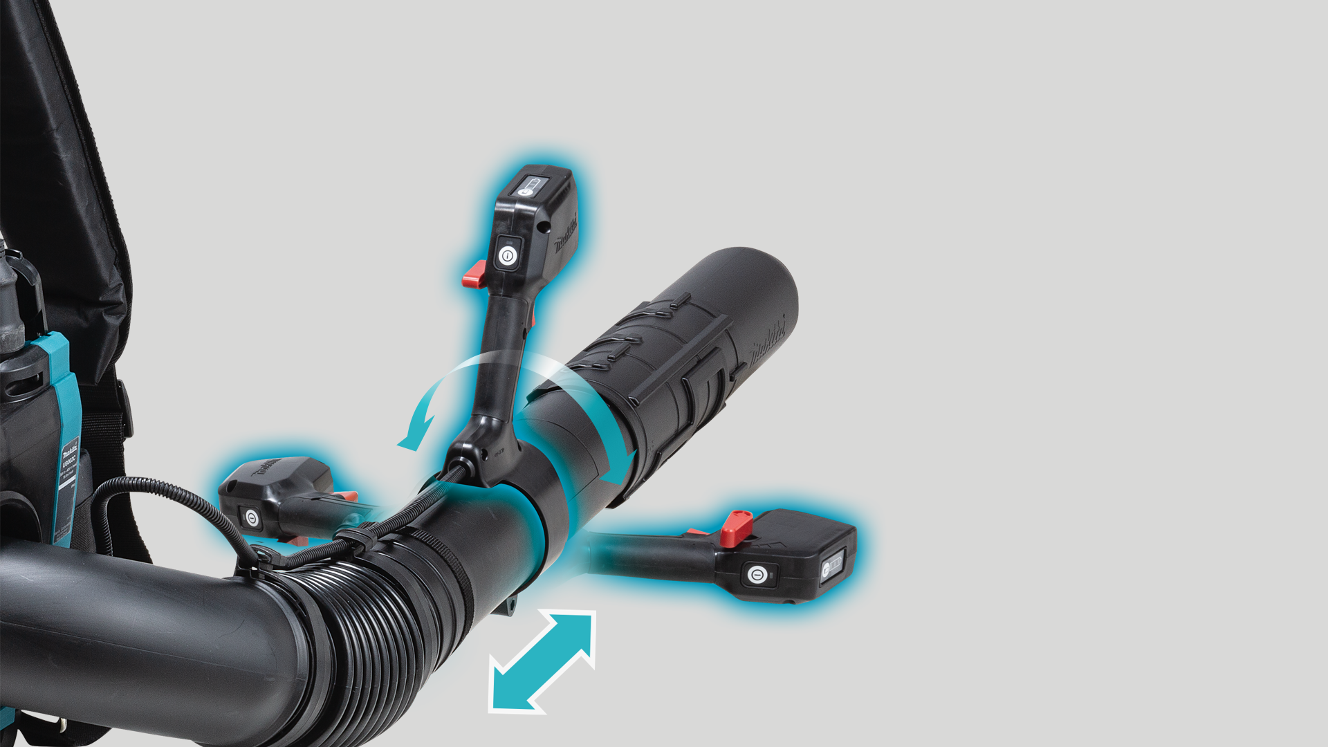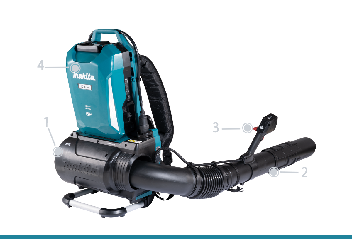 Makita´s UB002C is a Portable Power pack powered Blower, with high blowing force and air flow. It has a lot of convenient features like The grip position is adjustable forward/backward and left/right to suit user's size or work posture. Shoulder belt for operator convenience. Variable speed control by trigger plus Cruise control lever; Cruise control lever allows user to lock the variable speed control trigger at a desired power level.